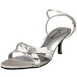 Annie Shoes Women's Engagement Ankle-Strap Sandal,Silver Satin,10 W US